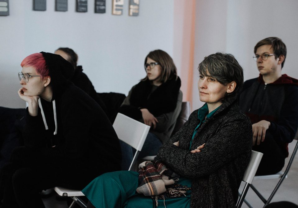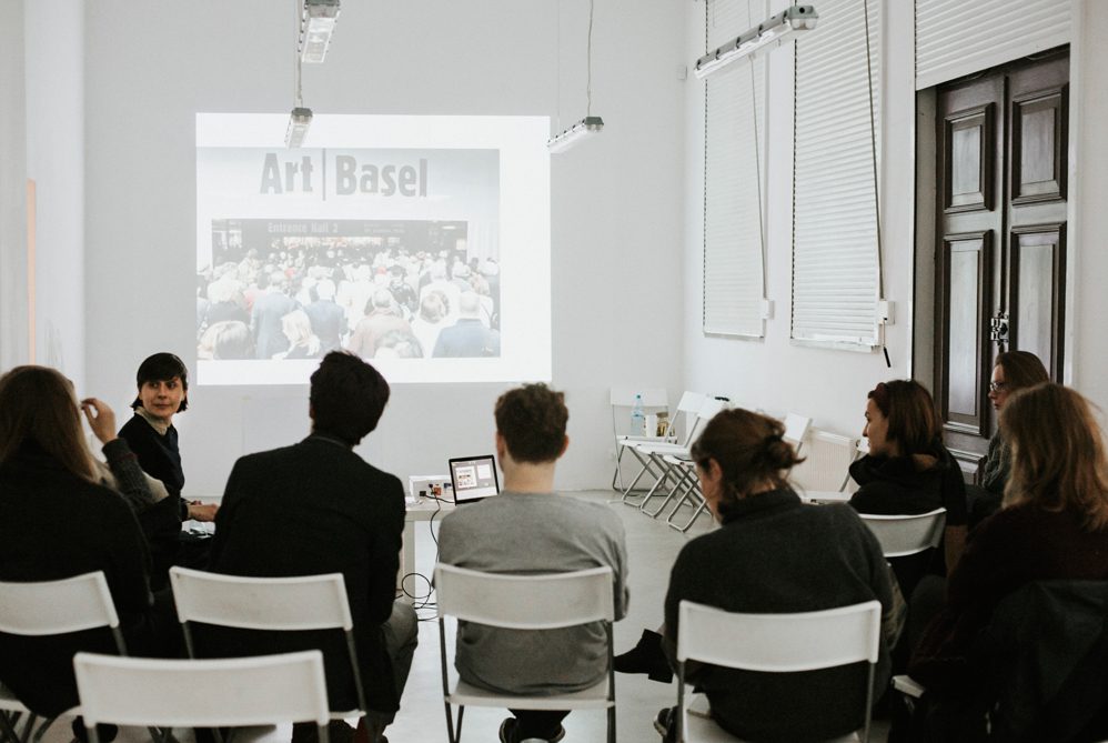 Throughout a month, a group of eleven participants works in the gallery space with experts: an experienced artist regarding the methods of conceptual devising of exhibitions; a cultural institution representative regarding fund-raising and relations between the artist and the institution; a lawyer regarding the formal aspects of exhibitions (e.g. copyright); a commercial gallery representative regarding the ways to participate in the art market circulation.