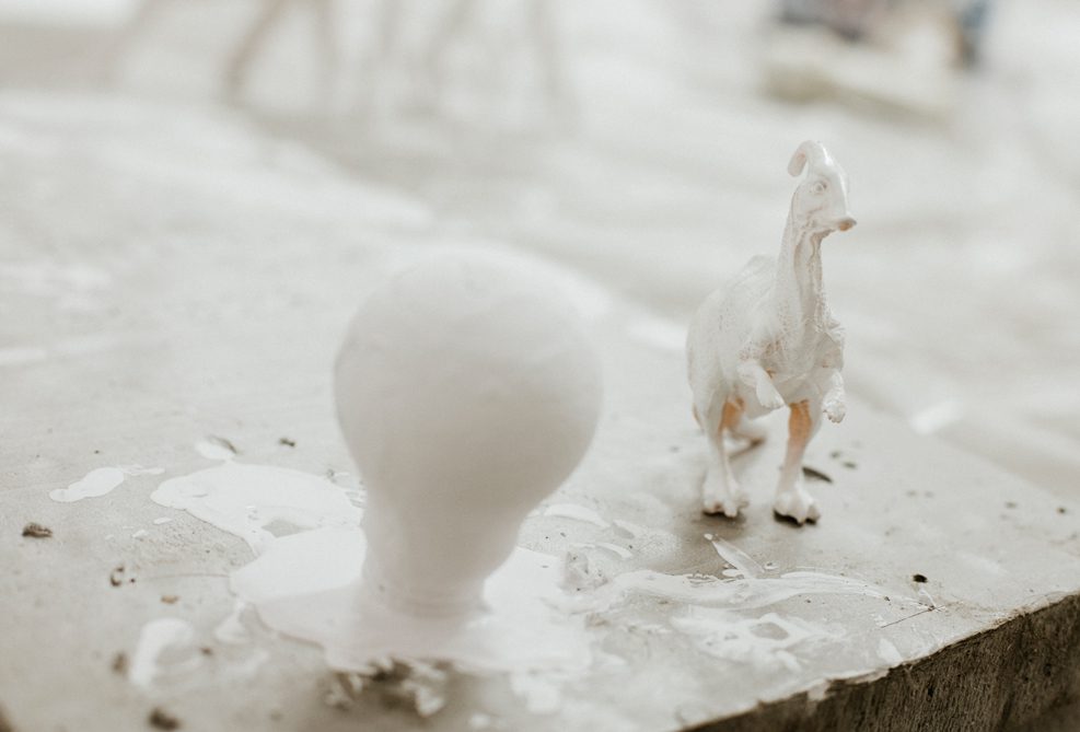The workshop Un/Drawn involves a range of activities indispensable to achieve the final effect: one’s own favourite still life composition, which is then used to work with an object, photography and a selected art discipline (drawing, painting, sculpture, graphic printing). The initiative consists in building one’s own aesthetic composition akin to a classic still life. Each student will prime thus prepared “objects” and the backdrop as well as paint them white. This will result in a surface, a drawing base or an underpainting, ready to be covered with graphite, paint or charcoal. Further works will involve imposing layers of drawing/painting on the previously prepared objects and skillful illumination of the framed set in order to create the final photographic take. The final photograph created on the basis of an “outlined” still life should be made in such a way so as to make the “visible” weight of the photographed objects disappear, leaving merely a thin layer of the added drawing/painting. The final task will consist in preparing the photograph for large-format printing (maximum of 100cm × 70cm) on appropriate matt paper to make the photograph resemble a work that was correctly executed at a traditional drawing or painting studio.