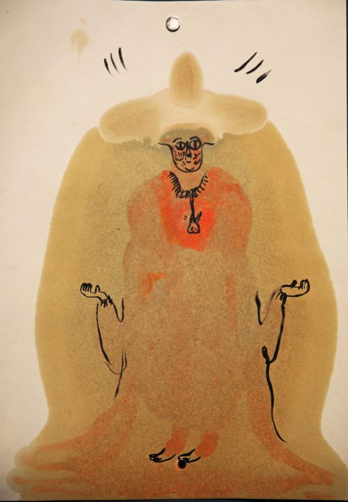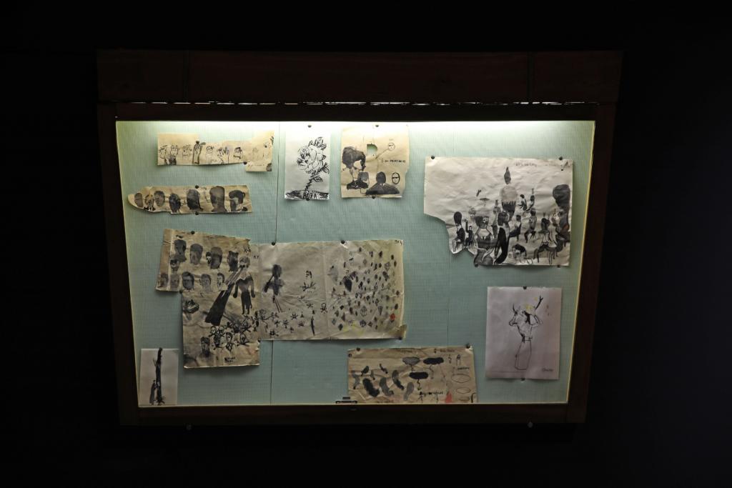 The drawings are extremely detailed. The multiplicity of elements and patterns lends them an even greater spatial dimension; they draw us into their depths, into the world of Emilka’s imagination, inviting us to visit and explore it. Some are dense, crowded, as if their subsequent layers were engaged in a temporal dialogue, whereas others are simplified, synthetic, reduced to scissor cut lines. Cut-out from fancy imported paper or otherwise from silver chocolate foil wrapping or paper scraps found on the floor. Teddy bears for her mum were cut out from tinplate. A letter to her friend was sewn. Everything was art. She could spend all her savings on a dress of her dreams or take just a few minutes to hastily stitch together some pieces of fabric with a skeleton drawing to create an original outfit. If she got an idea to draw two hugging skeletons, then a marathon of attempts began – she would talk about, write about it, draw, paint, sew. She would rattle her works off, create them in a notebook, in a lift.