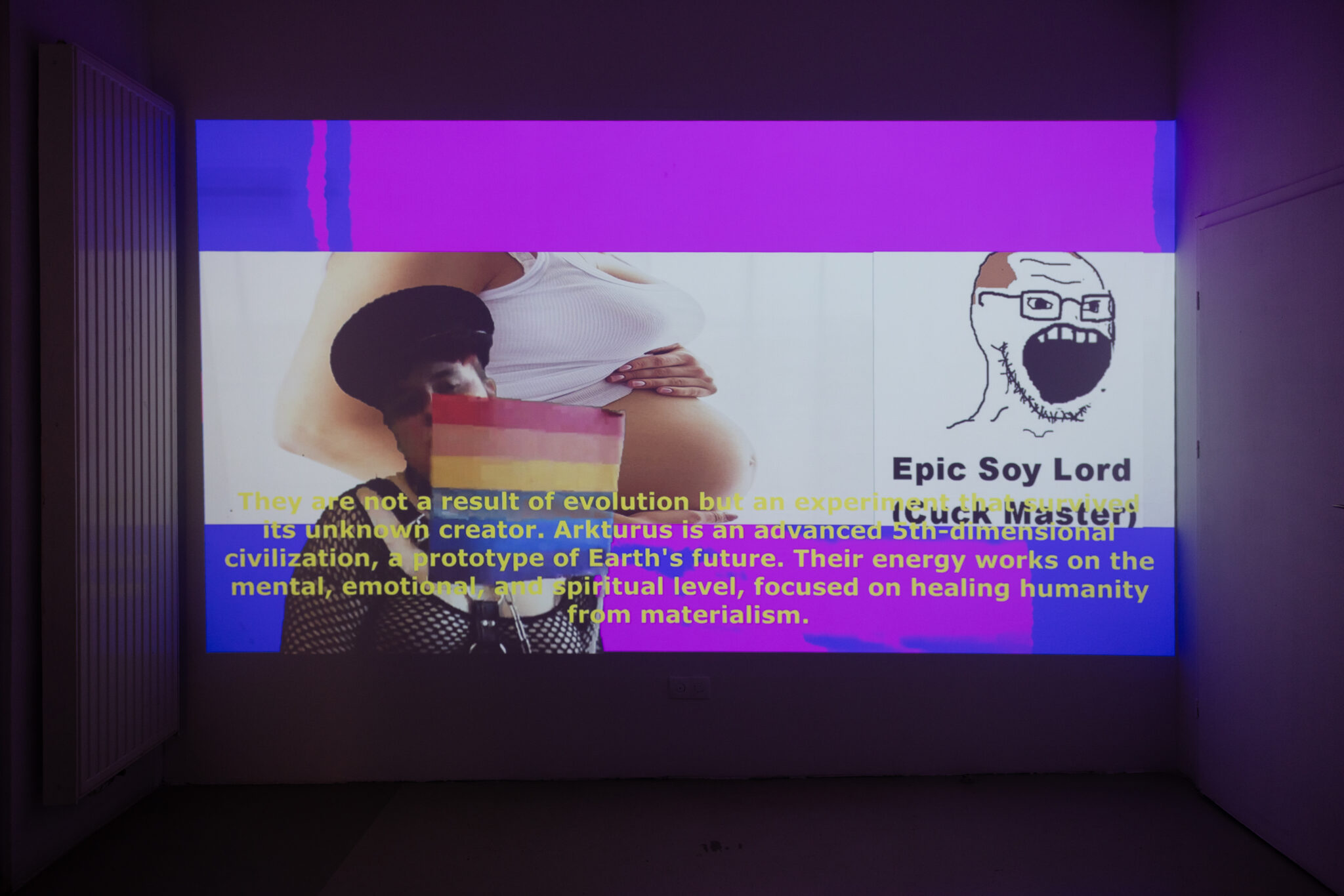 Emilia Rodziewicz. Graduate of the Faculty of Sculpture and Intermedia of the Academy of Fine Arts in Gdańsk. She completed her studies in 2023. In her own words: ‘In my free time, I am a social activist and argue with people online, which influences my creative output, which mainly revolves around net art and short video forms. My creative work focuses on the participatory potential of Internet art, image deconstruction, politics, memes, dynamic montages and drawing inspiration from the press. I also find illustrating relaxing, particularly when focused on carnality – that is how I recover from putting things together and irritating boys in suits. In my short artistic career, I have done a couple exhibitions and open calls, presenting my works on stereotypical modern girls, a video about my endometriosis, a video performance in which I LARP as Mao the Rising Sun, as well as ones in which I play every traitor to Poland in my family, and from time to time I also present my watercolour paintings of naked people.’