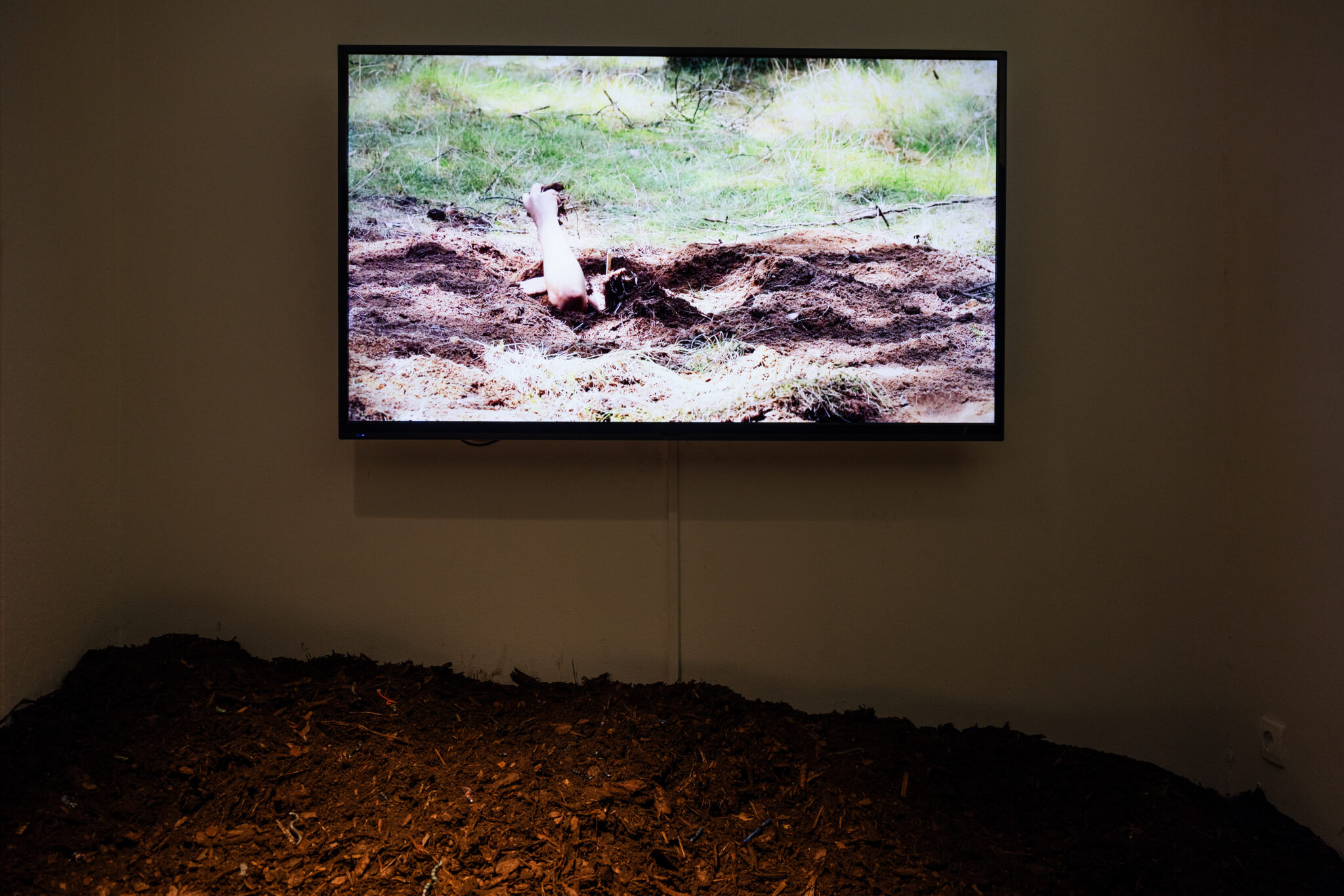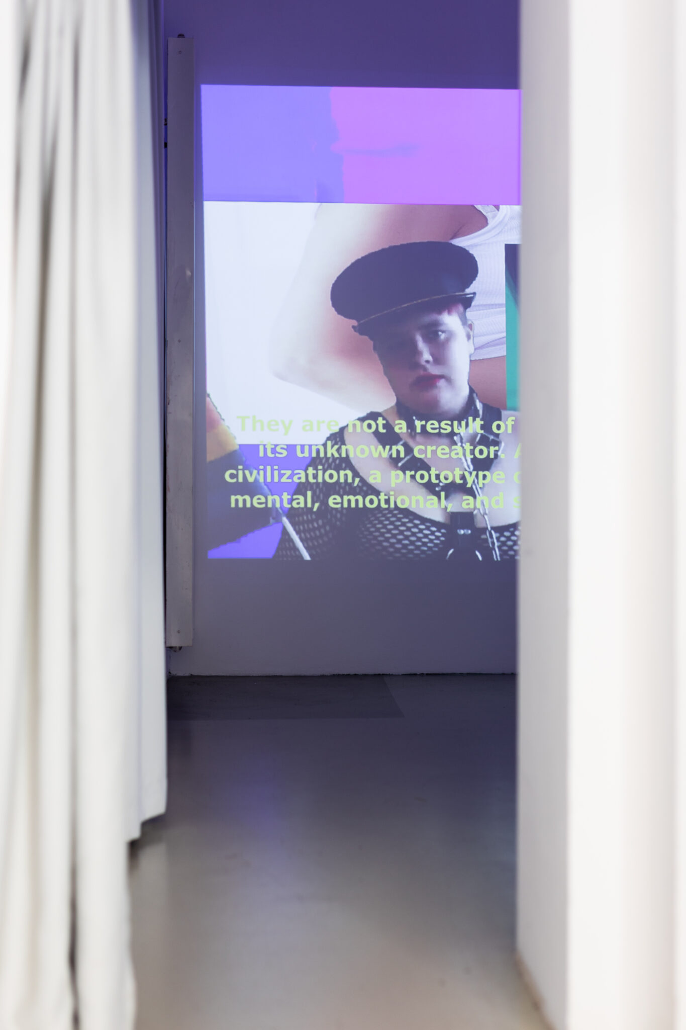 Michał Łagowski. Visual artist, teacher and author of texts. In 2013, he graduated from the Painting Faculty of the Gdańsk Academy of Fine Arts, where he studied at the Intermedia Workshop under Grzegorz Klaman. That same year, he presented his work Transparenty at the Co widać. Polska sztuka dzisiaj exhibition at the Museum of Modern Art in Warsaw. From 2013 to 2014, he participated in the Kurator Libera initiative organised by BWA Wrocław. In 2014, Łagowski presented his works at the Into the Country group exhibition in Ankara, Turkey. A year later, he participated in the Je brûle Paris group exhibition, curated by Stanisław Ruksza at the Cité internationale des arts in Paris. Łagowski also participated in the Test ducha exhibition, organised as part of the 6th Pomada festival at the Ujazdów Castle Centre of Contemporary Art in Warsaw. In 2016, he participated in the group exhibition To czego jeszcze nie ma, a można sobie wyobrazić, że będzie at GGM2. That same year, he co-organised the group exhibition Paganus at GGM1. Łagowski’s art revolves around rural life, its hardships and at times brutal nature, combined with themes relating to the body, gender, feminism and queerness. In his art, the countryside is not longer presented as an idealised, idyllic place with a close relationship with nature. As an insider, he strives to present its true face, which may be difficult to accept at times. Nevertheless, he does so with a certain dose of empathy and even nostalgia, which are a result of growing up and living there himself. For several years now, he has worked as a teacher to neurodivergent students. This has given him a sense of greater agency and being genuinely needed compared to contemporary art, which led him to withdrawing from the scene for a time. After a several years-long hiatus, he decided to return to exhibiting his works, participating in such events as the Gdańsk Art Biennale, where he won the Award of the Rector of the Academy of Fine Arts.
