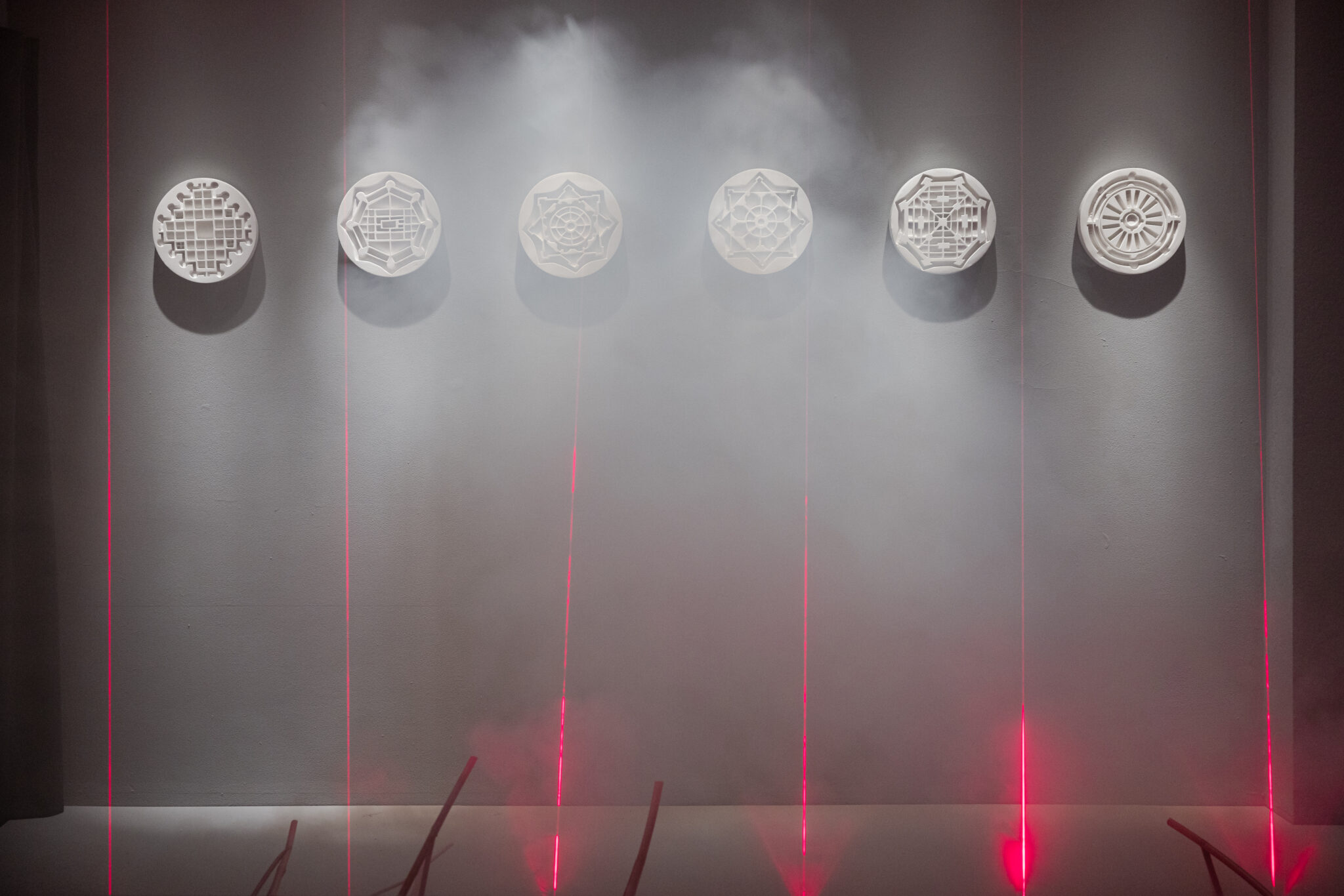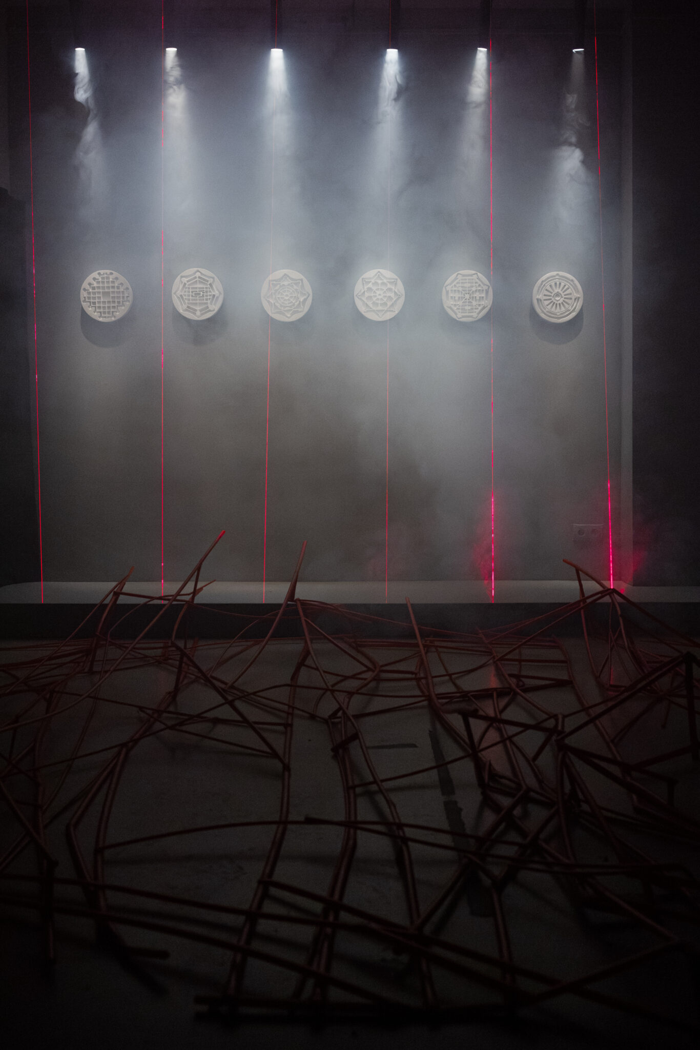 The exhibition of Małgorzata Kręcka-Rozenkranz belongs to the Logos-Bios cycle inviting those sculptors whose works analyse and confront the interface between culture and nature. The realm of chaos representing biology and that of logos standing for order, human interference and apparently symbolic oppression.