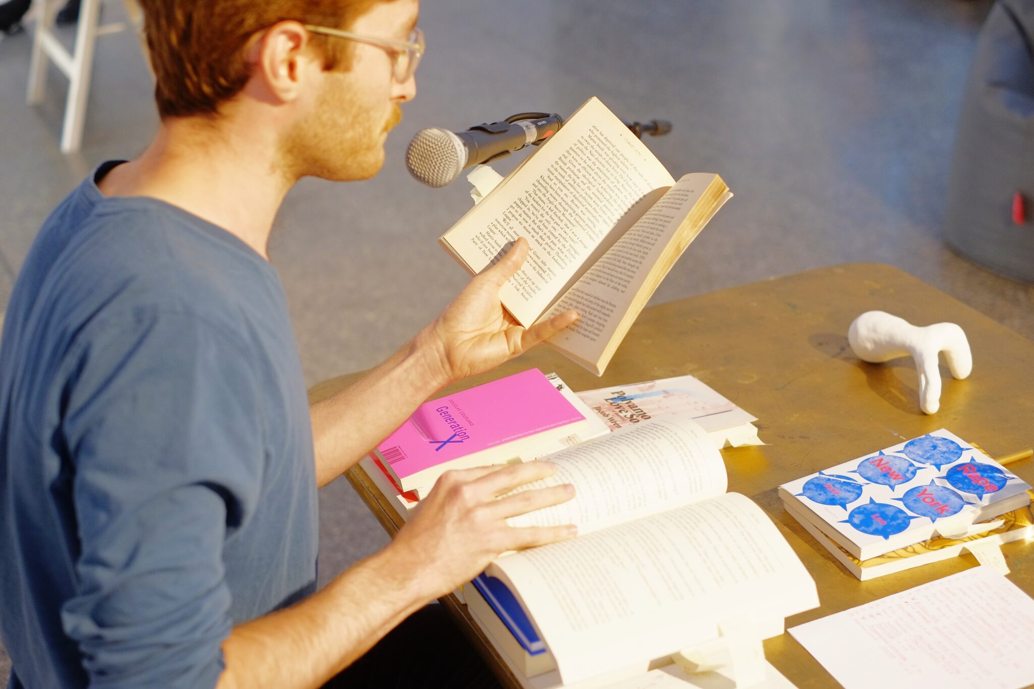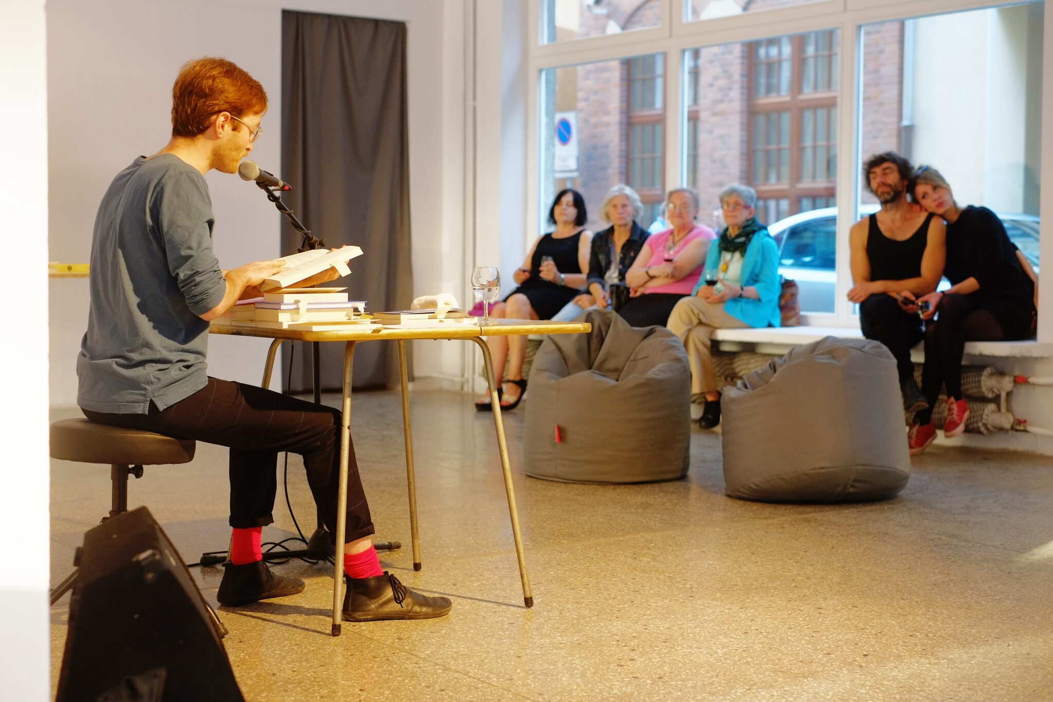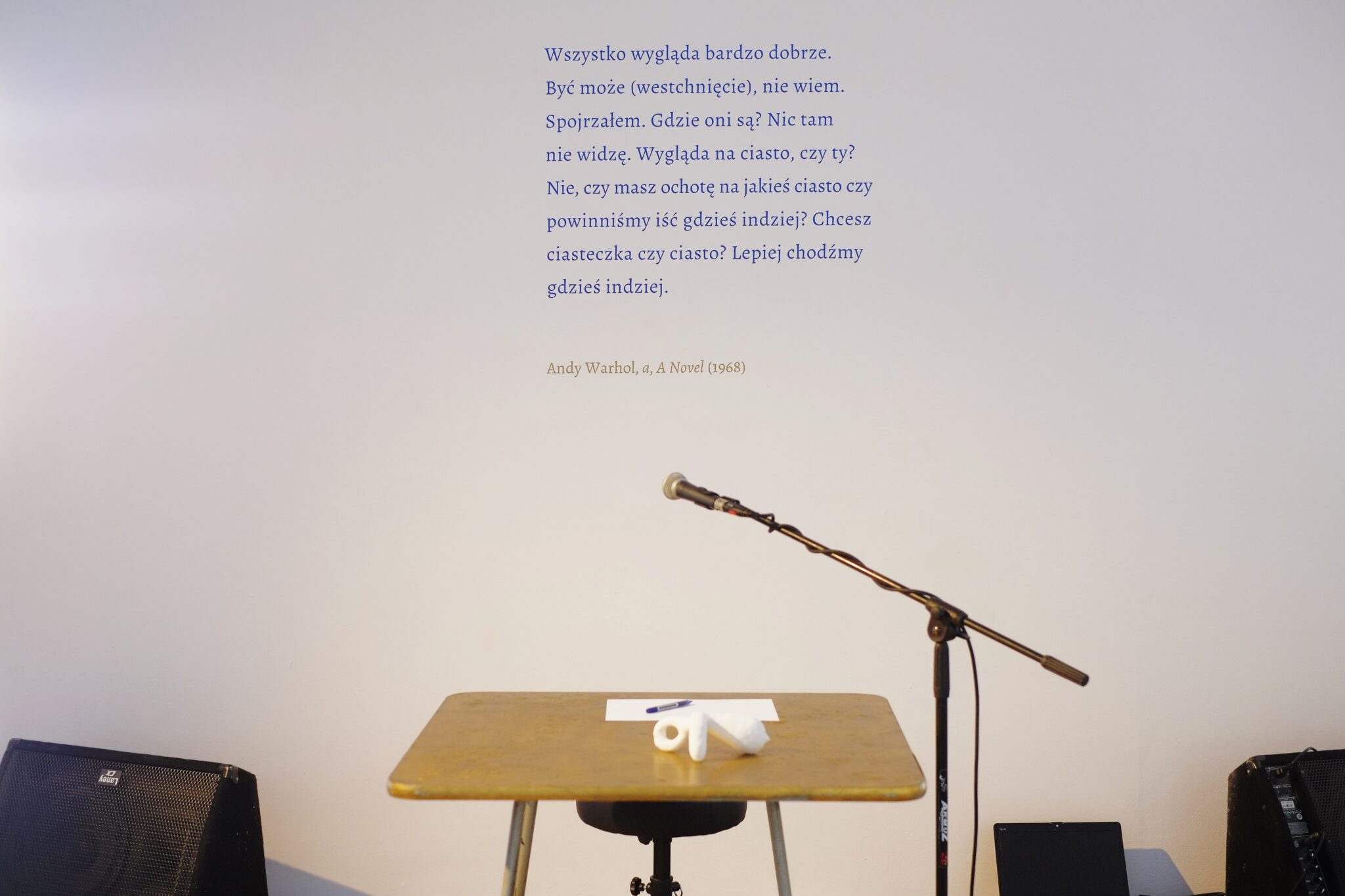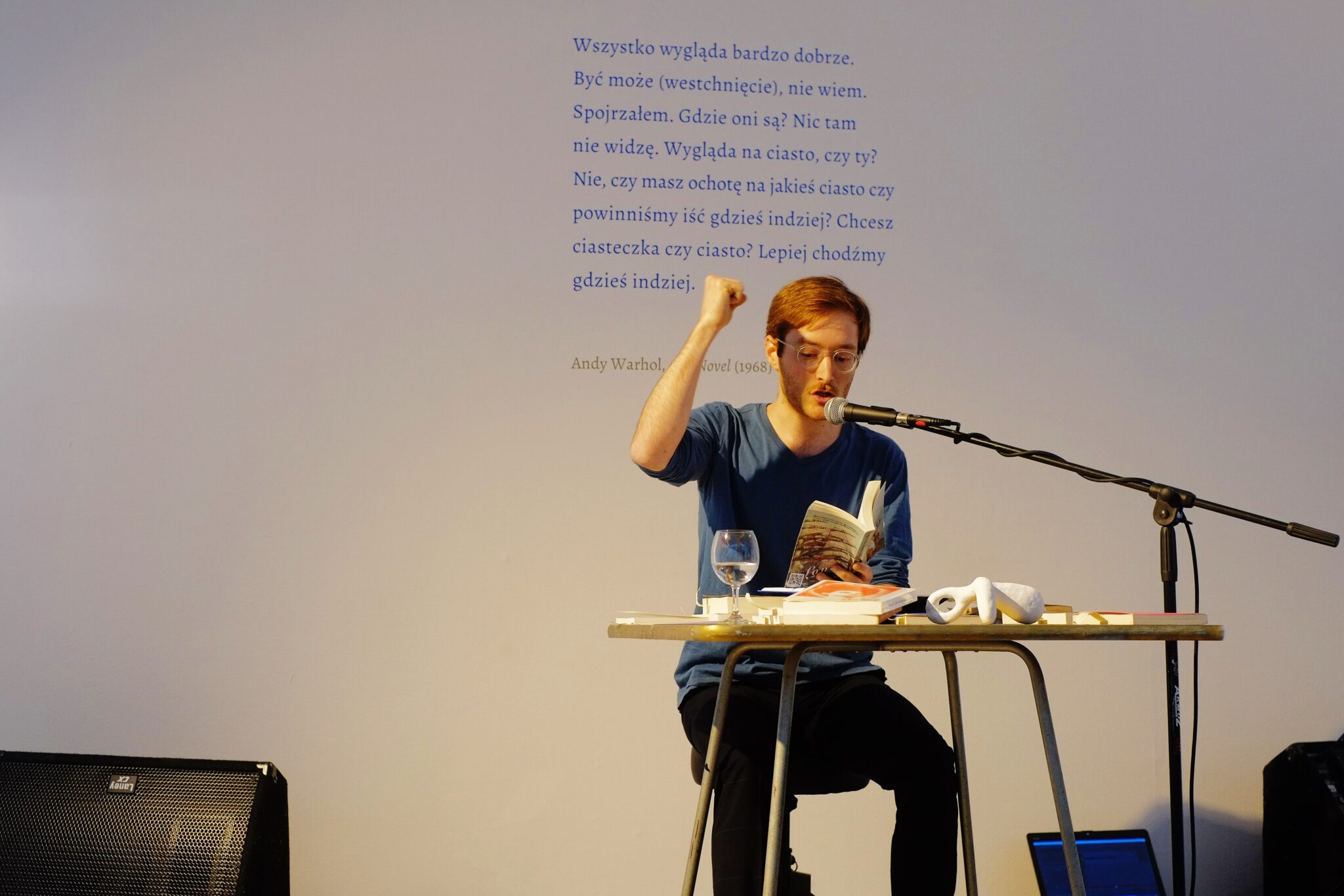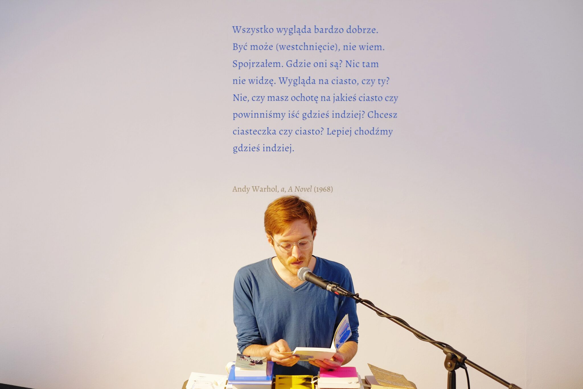 During the opening evening on 18 June some of the artists authors will be reading their novels aloud for the audience. Sebastian Cichocki and Lukasz Jastrubczak will perform their artist’s novel Miraż (2012), Oskar Dawicki will perform his artist’s novel W Polowie Puste (2013). Also, artist David Bernstein has been given carte blanche to DJ the collection and create a performance based on the reading of excerpts from the artist’s novels. Reading is usually an act carried out in silence and solitude (just think of the reader’s lowering of the eyelids to avert the other’s gaze). Here, the inner voice in the silent reader’s mind is transformed into an audible performance by being read aloud. The narrative is expanded beyond the space of the page and reading becomes a collective shared experience.