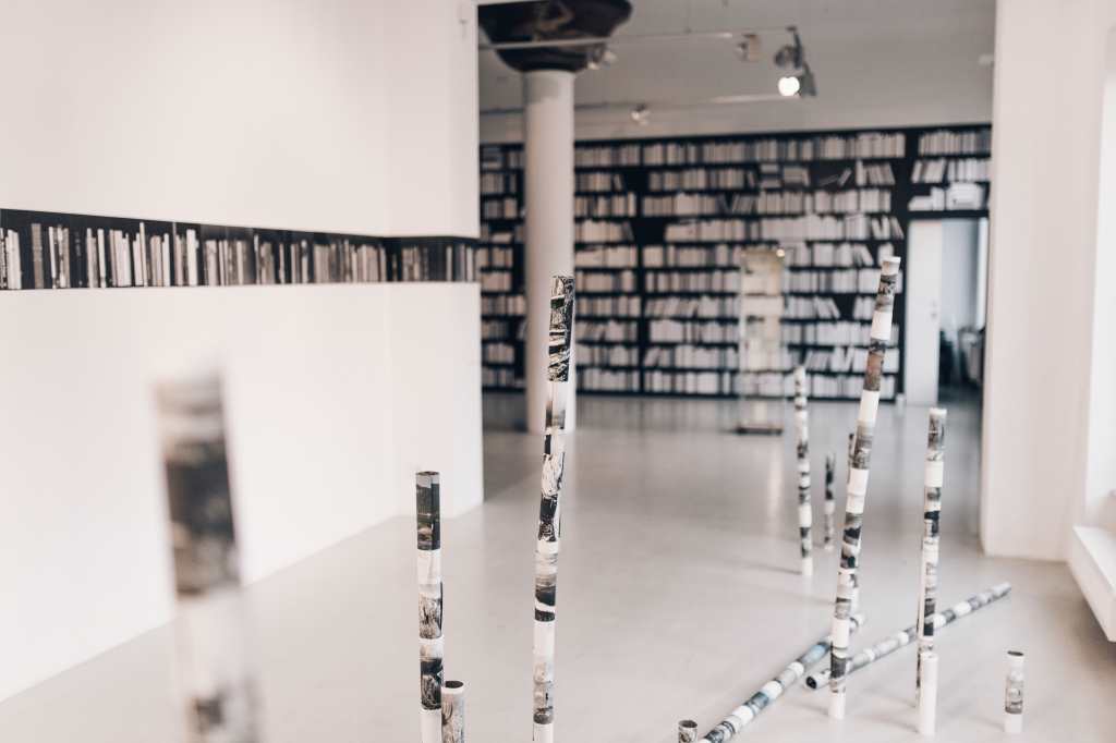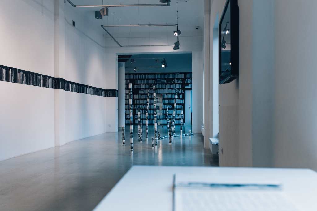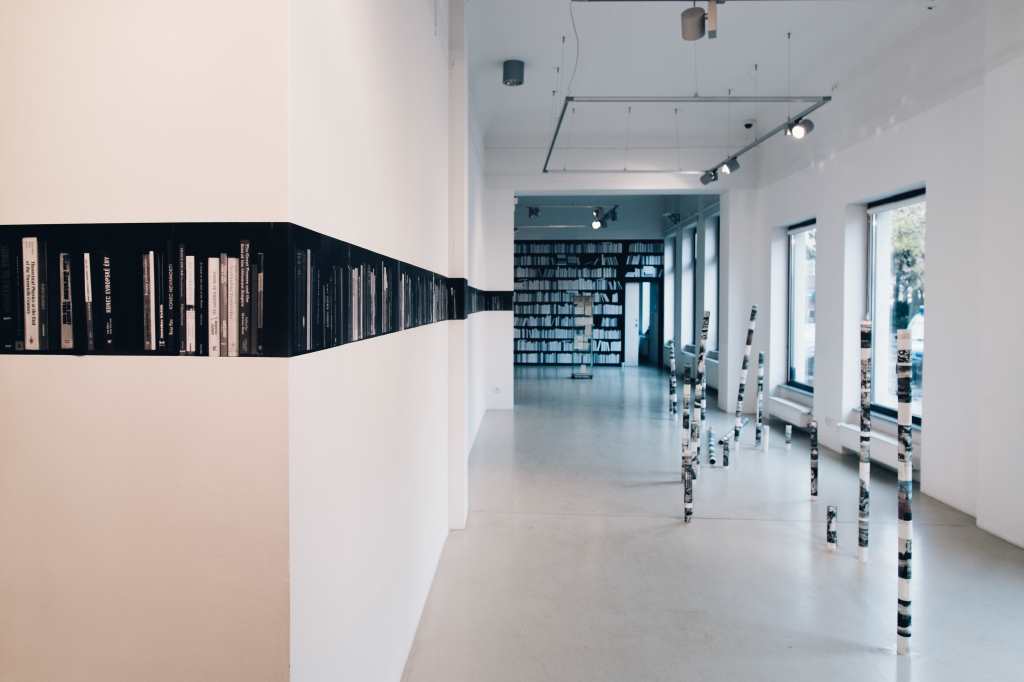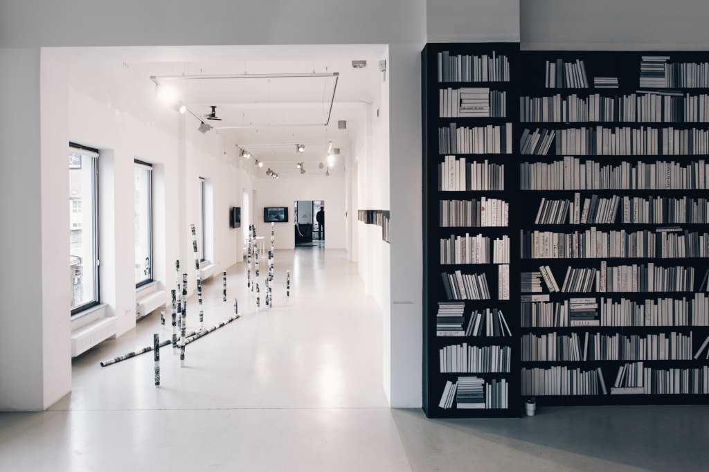 In Jaro Varga’s library, everyone can find a book they would like to read. A reader simply needs to write down its title on the ridge of a volume that lies on the shelf. Such a book collection, created together with the audience, is the result of our interests, creativity, and needs that we have towards public libraries. The library, claims the artist, is a specific construction of common knowledge that refers to its time and current ideology. In Varga’s installation, collective memory that constructs this knowledge goes in pair with individual memory, a subjective experience of a single reader. Books on the shelves of this unique collection, which was first displayed in 2008, initially embody the idea of tabula rasa. By filling it up with particular titles, the audience creates an interactive, democratic space, stripped of a material artifact. It allows the antagonistic contexts to coexist next to each other, without oppression, exclusion, or any control. The library becomes a cognitive map of visitors / citizens.