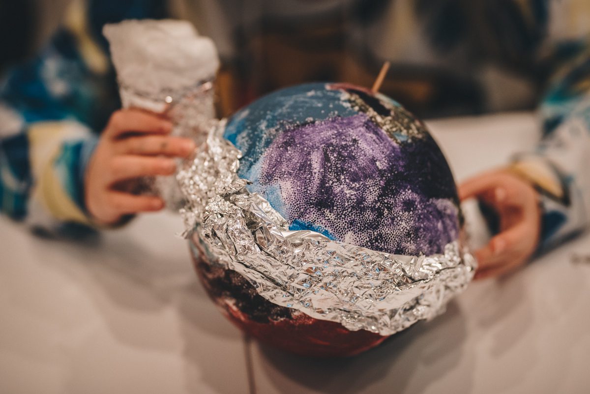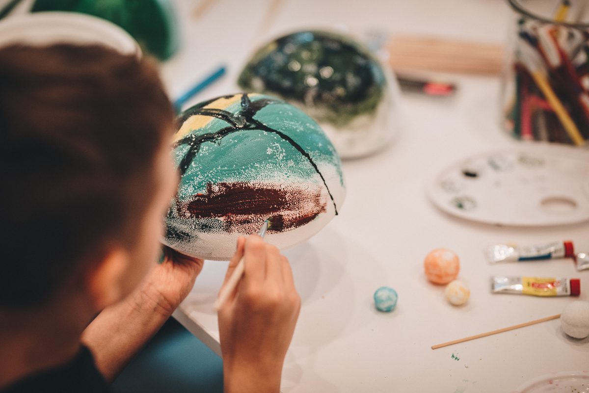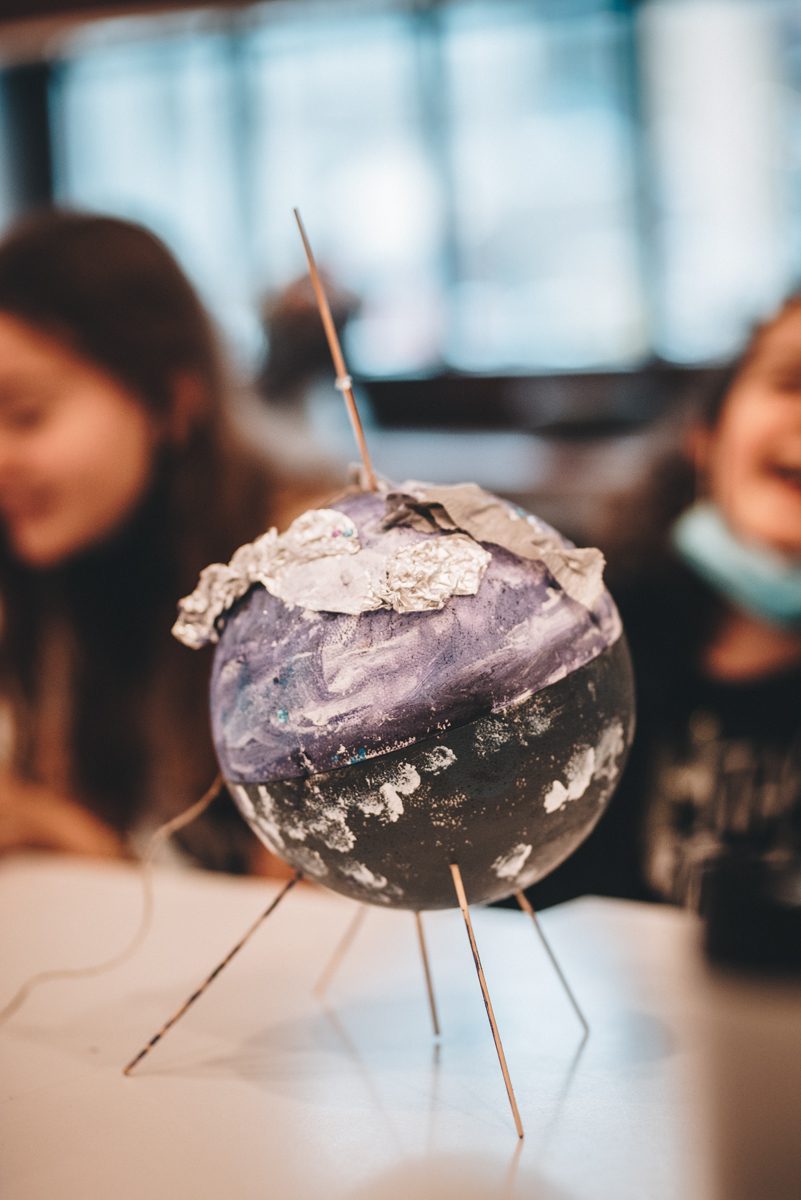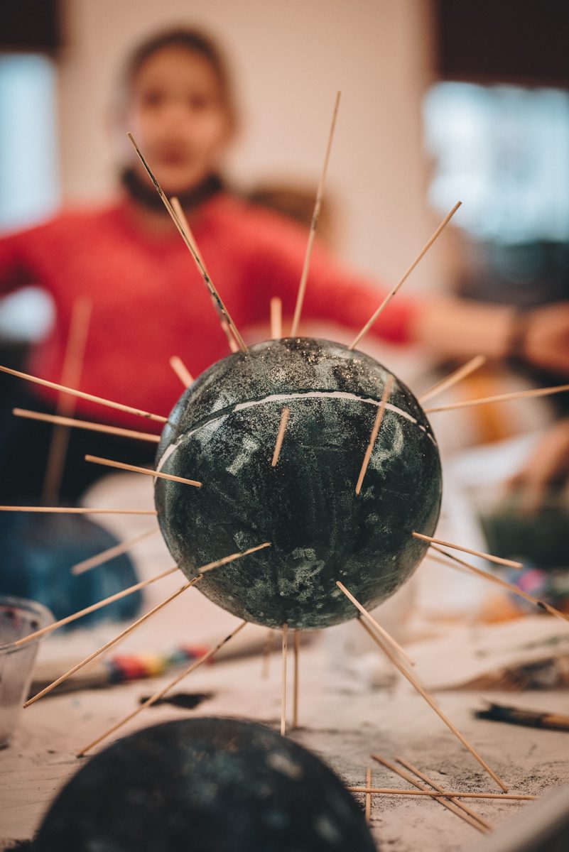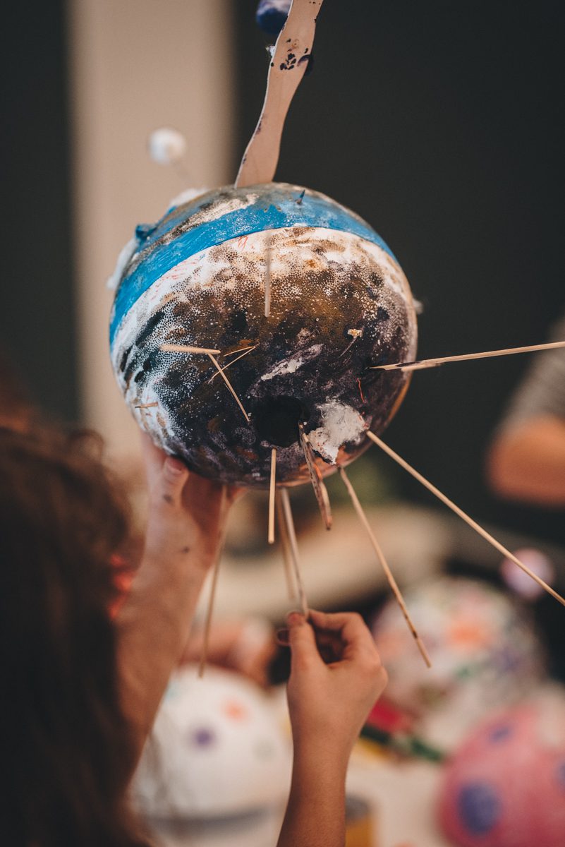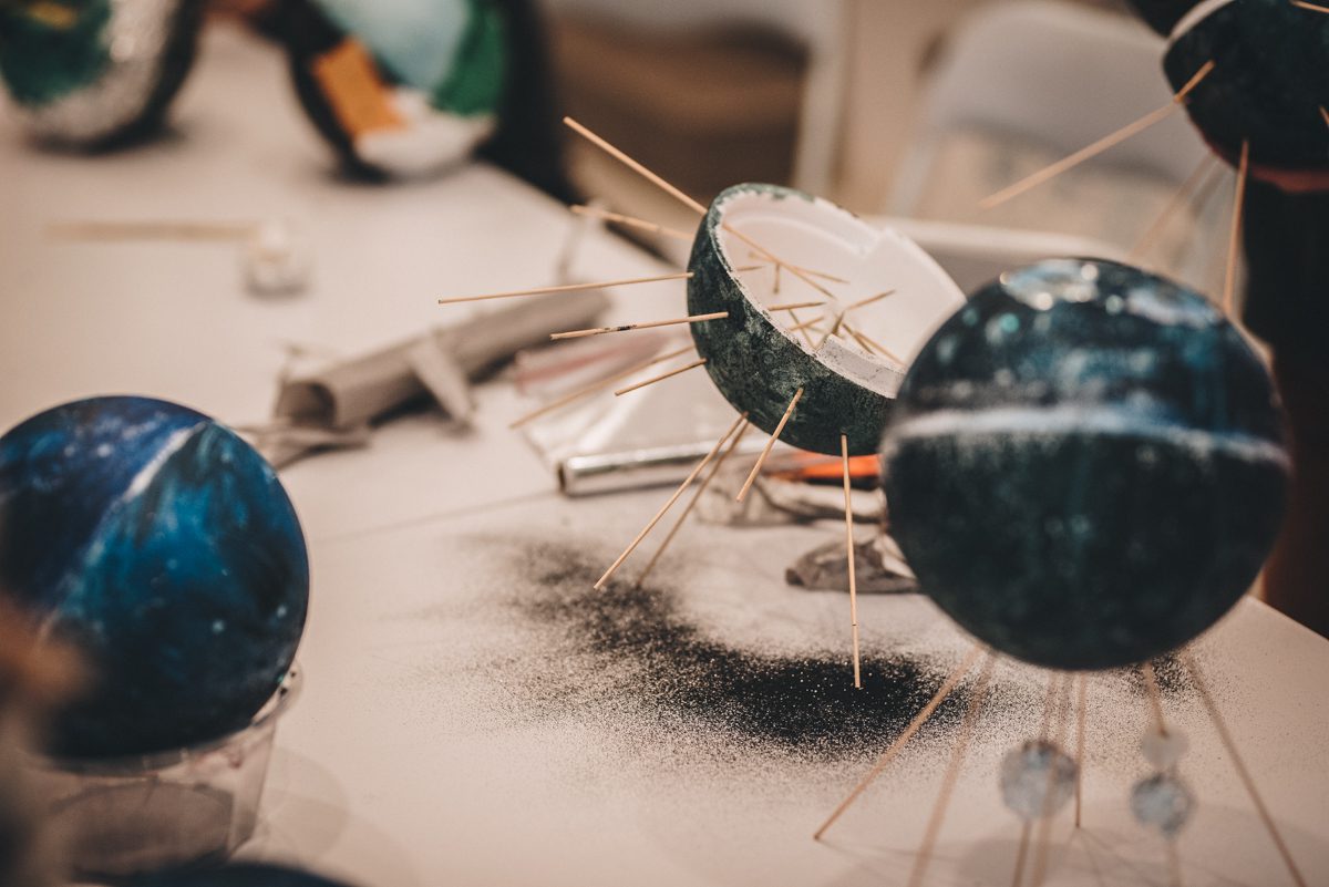 Z użyciem kul styropianowych i różnorodnych materiałów plastycznych, stworzyliśmy własne planety. Określiliśmy ich czas orbitalny i odległość od Słońca, prędkość obrotu i moment bezwładności. Powstała osobliwa galaktyka ciał. Czy niebieskich? Wszystko się może zdarzyć, gdy zostaniemy porwani przez żywioł wyjątkowej sztuki Rogulusa!