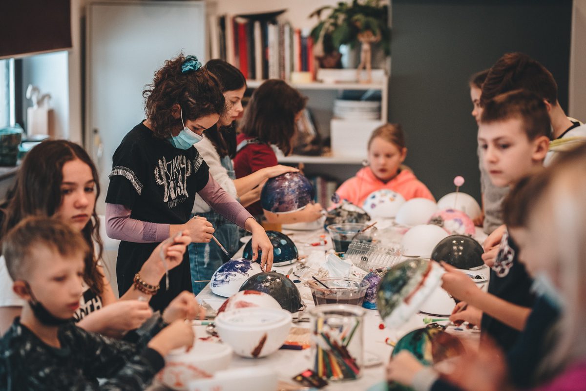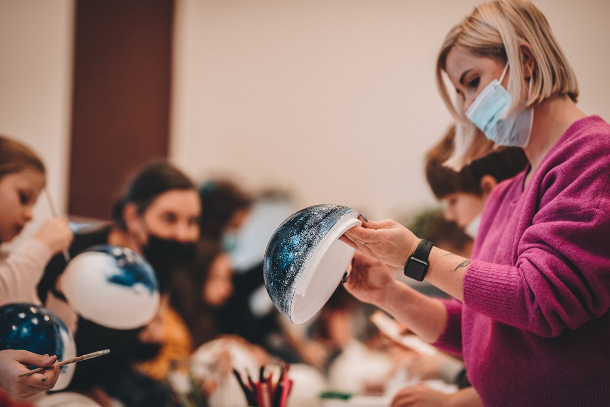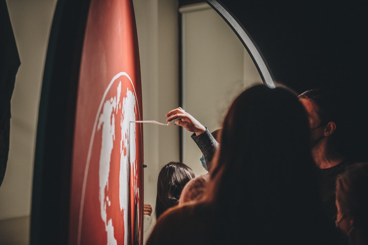 Podczas naszego spotkania warsztatowego odwołaliśmy się w głównej mierze do pozaziemskiej warstwy wizualnej ekspozycji. Artysta Marek Rogulski wprowadził nas w inny – zdecydowanie nierównoległy – wymiar. Klaustrofobicznie nagromadzone konstelacje instalacji tworzą ciasny i bardzo własny wszechświat. Nowy układ kosmiczny, rządzący się zdecydowanie swoimi prawami fizyki. Kosmodromy, wehikuły, satelity. Kopuły i hemisfery. Księżycowe kratery. Galaktyczny zbiór Unidentified Art Objects wzywa do lotu na orbitę.