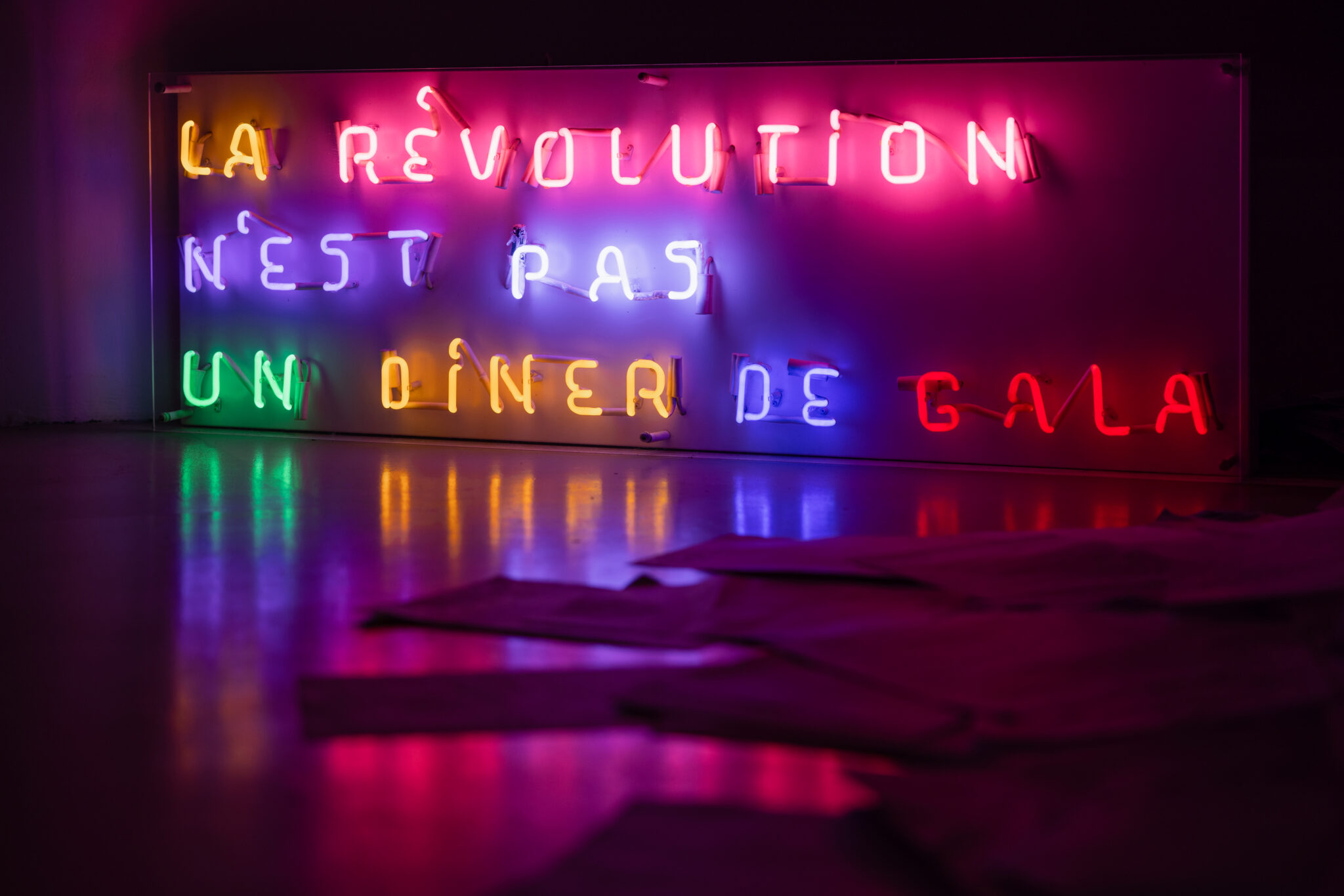 Zaproszeni artyści i artystki budują swoje opowieści na granicy literatury i sztuki. Snują wizualne i dźwiękowe narracje o sile i absurdzie istnienia, sensualnych wyborach i wrażliwości, o języku, jego energii i słabości, o przepełnieniu i ruchu, który „uruchamia rewolucję, ciesząc, zaskakując i wyzwalając”. Konstrukcja wystawy ukształtowała się w procesie łączenia, plątania, wzbudzania akordów, gromadzenia różnych emocji i stanów, przecinania się czasu z historią i wyobrażonego z tym, co realne.