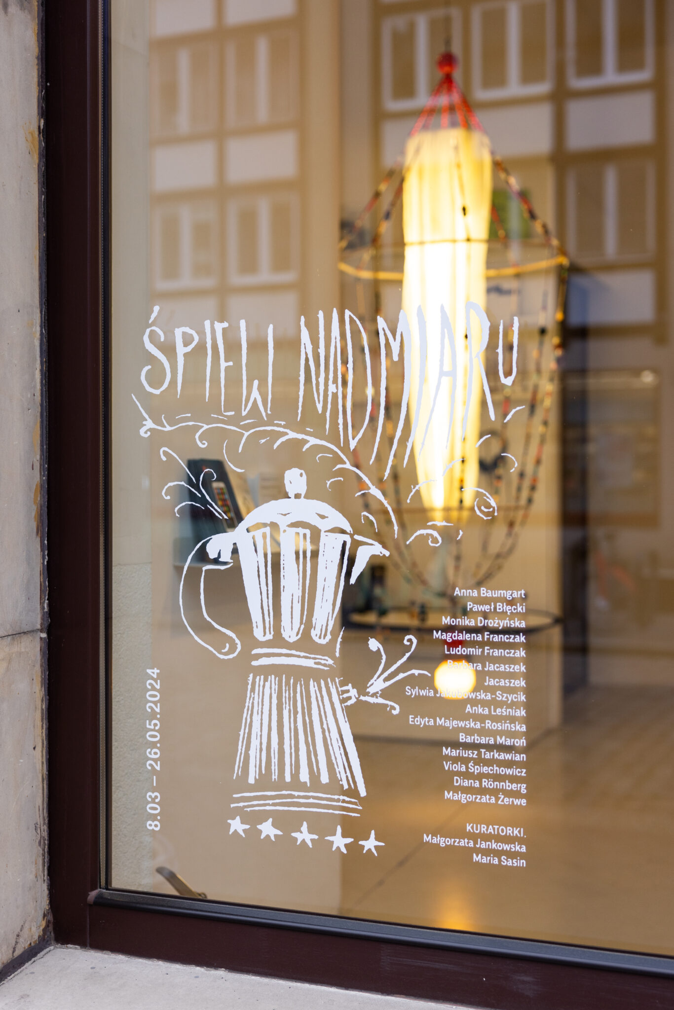 W wystawowym nadmiarze znalazło się także miejsce dla symbolicznego przypomnienia powojennej historii budynku przy Szerokiej 34/35. Znajdująca się tu w przeszłości kawiarnia Marysieńka była z pewnością miejscem nadmiaru spotkań, historii, dźwięków i zapachów. Ich atmosferę i znaczenie jako obszaru relacyjnego próbowaliśmy odtworzyć w dynamice i rytmie wystawy.