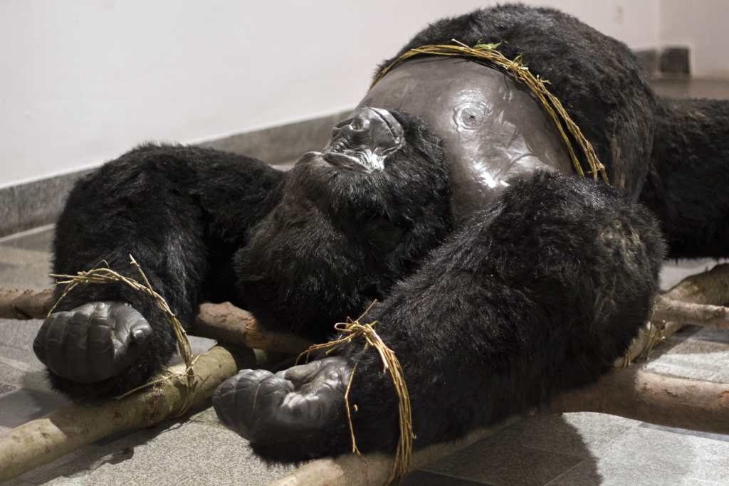 Tytuł wystawy Bóg Małpa nawiązuje do fuzji dwóch opozycyjnych narracji, jakich Honorata Martin doświadczyła będąc dzieckiem. Lekcje religii opowiadały o pochodzeniu człowieka zupełnie inaczej niż lekcje biologii. Schizofreniczny program szkoły podstawowej w dziecięcym przekonaniu nie mógł się wykluczać, obie wersje w umyśle młodej artystki zlały się w jedną: Skoro człowiek pochodzi od małpy, a jednocześnie stworzył go bóg na własne podobieństwo, to bóg musi być także małpą. Dla nauczycieli dziecięca historyjka miała wymiar obrazoburczy, gdyż zwierzęcy status człowieka uwłacza chrześcijańskiej, antropocentrycznej wizji pochodzenia człowieka. Na wystawie zobaczymy coś wręcz przeciwnego. Natura człowieka jest naturą zwierzęcia, a jego śmierć podobną stratą, jak śmierć osobnika innego gatunku. Martin opowie o tym korzystając z różnych środków wyrazu, w tym malarstwa, rzeźby, wideo i dokumentacji performansu.