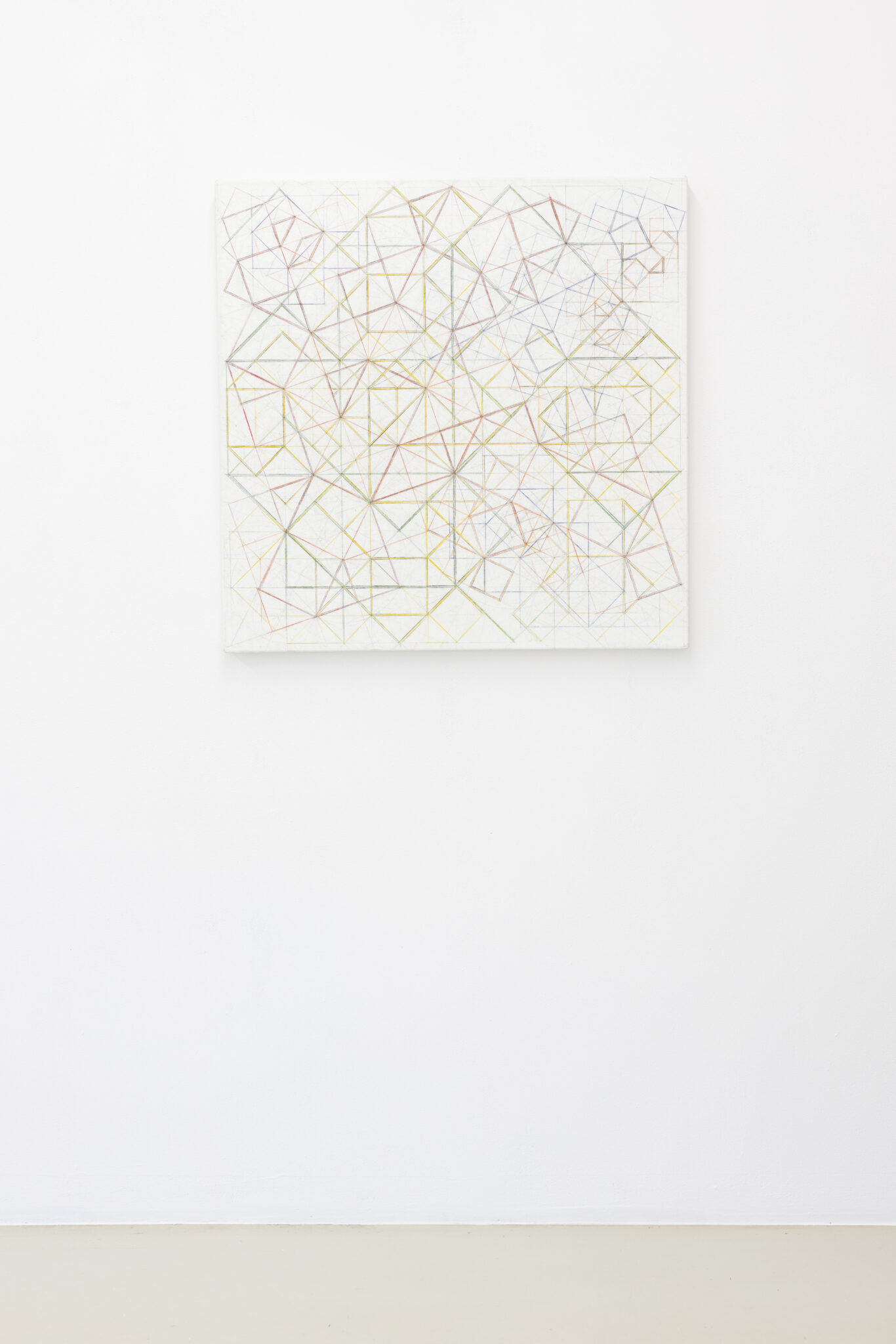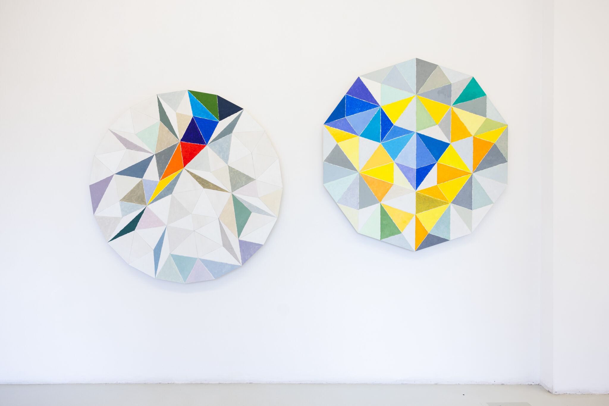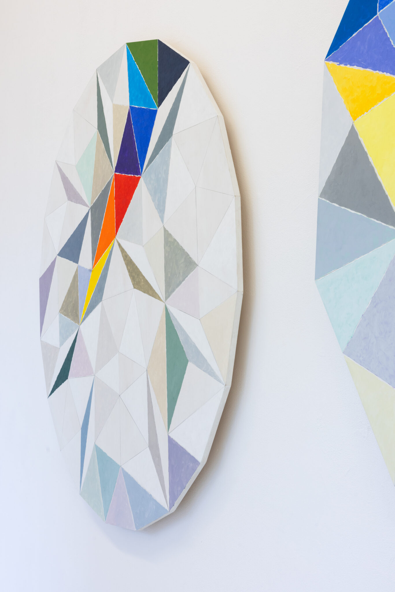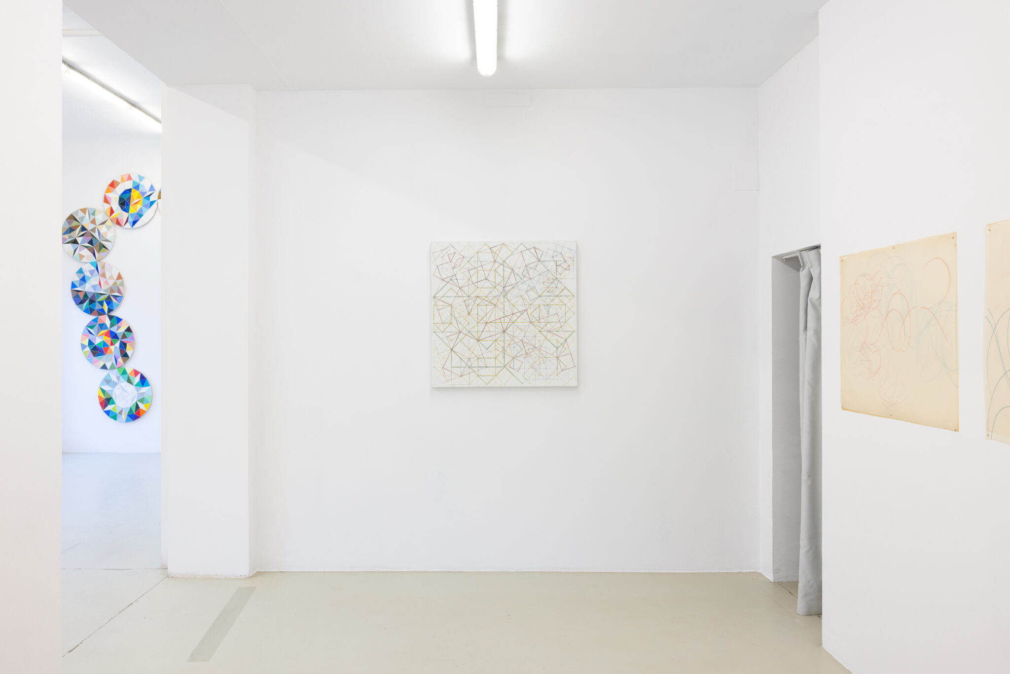 Odwrotnie zdaje się działać Krzysztof Wróblewski – obraz stanowi dla niego podstawową formę opisywania świata, a ich natłok postrzega jako zbiór otrzymywanych od otoczenia komunikatów. W prezentowanych na wystawie pracach, przygotowanych z myślą o niej, przenosi doświadczenie wzrokowe na odwzorowywanie rzeczywistości obrazem. Jednak nie jest zainteresowany realistyczną narracją wizualną, za punkt wyjścia obiera nauki ścisłe, które niczym zaciekły badacz poddaje nagięciom, przenosi na pole sztuk wizualnych i rozwija o własne rozwiązania kompozycyjne. Widzenie przestrzeni przekłada na sekwencje geometrycznych figur – uzyskiwane w ten sposób wzory zamyka w matematycznych strukturach i permutacjach, odnosząc się do wzorów stworzonych przez Rogera Penrose’a. Przybierają one modułowe reliefowe formy budowane z kombinacji dziesięcio i dwudziestoboków. Najnowsze dzieła artysty to nie tylko kontynuacja jego własnej praktyki, ale odpowiedź na propozycje Alicji Bielawskiej. W swoje prace wpisuje fragmentaryczność i ograniczenia naszej percepcji, przywołując na myśl słowa wspomnianego już Pereca: „Przestrzeń jest tym, co zatrzymuje nasz wzrok, o co się on potyka: przeszkodą, cegłą, kątem, znikającym punktem. Przestrzeń jest wtedy, gdy tworzy kąt, gdy się zatrzymuje, gdy musimy się obrócić, by znów ruszyła. Nie ma w niej nic ektoplazmatycznego; ma krawędzie, nie rozchodzi się we wszystkich kierunkach, robi wszystko, co trzeba, by linie kolejowe spotykały się na długo przed nieskończonością”[2].