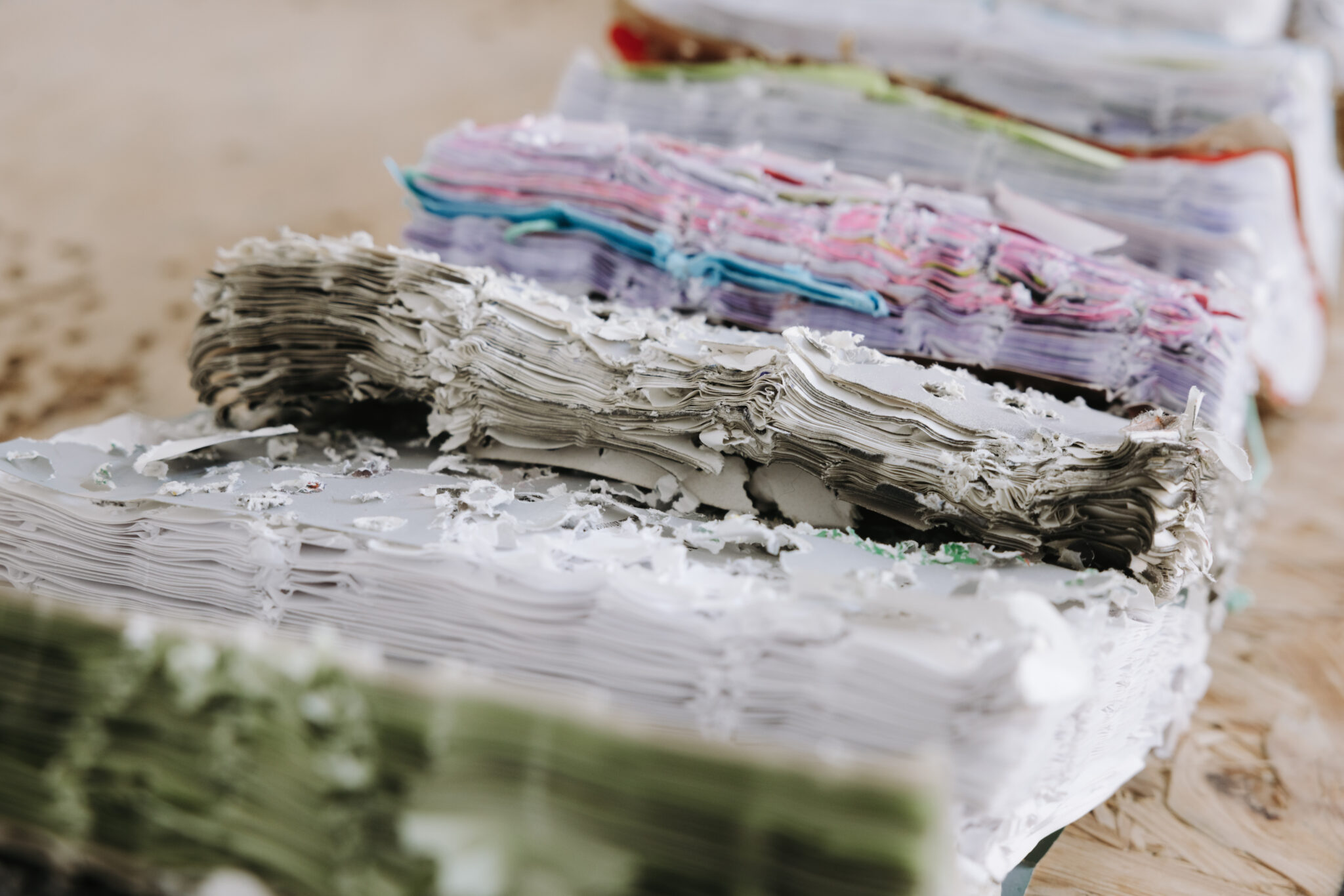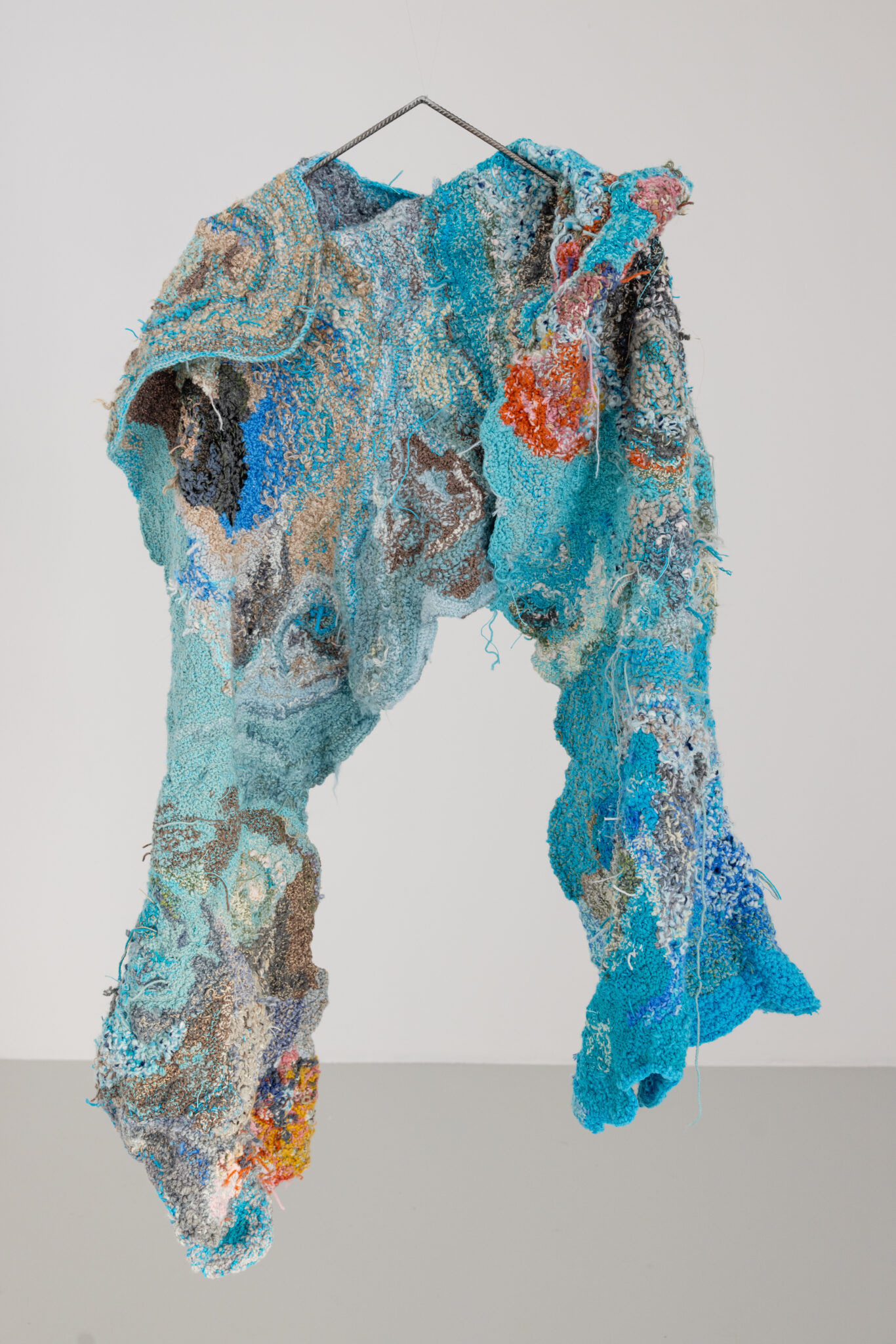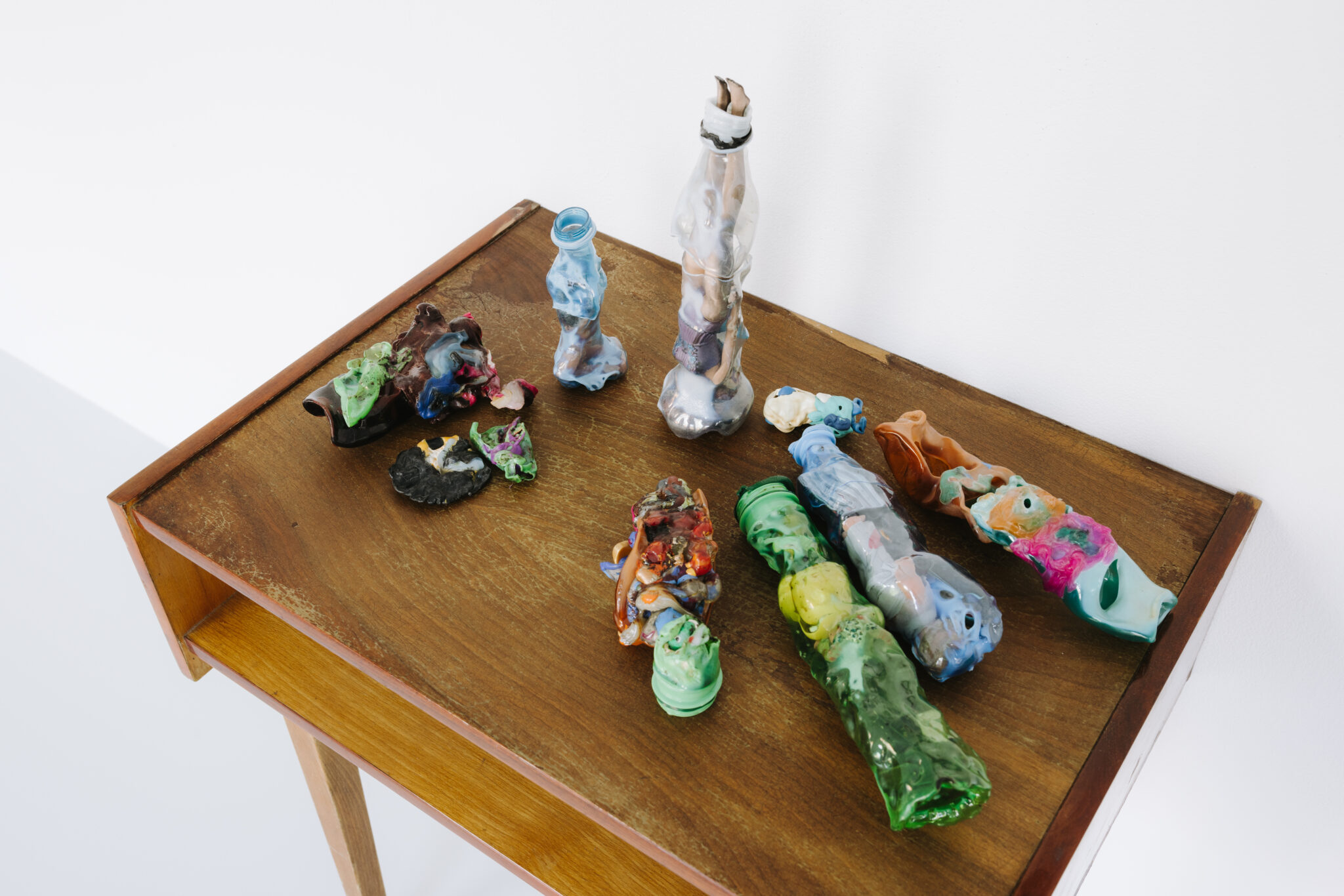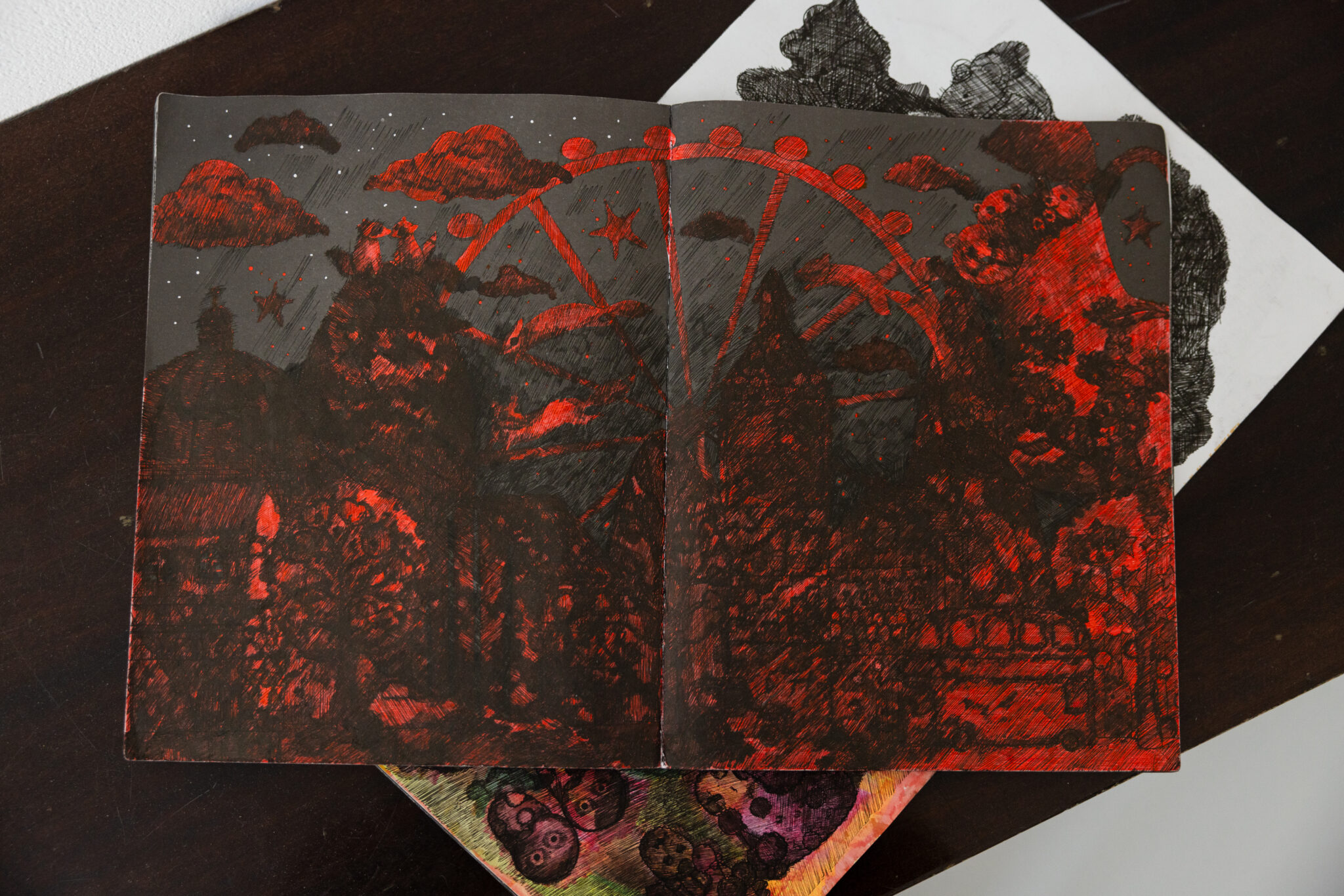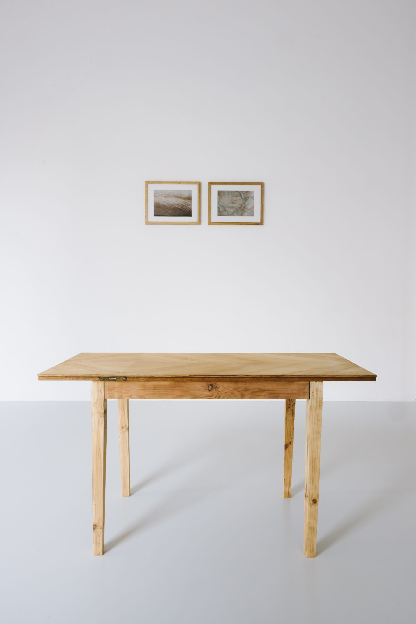 Artystka sytuuje swoje najnowsze prace gdzieś pomiędzy materią a gestem destrukcji. W tym „pomiędzy” odsłania przestrzeń, którą można odczytywać jako miejsce prowizoryczne, kruche, ale konieczne – schron. Pozornie zniszczone meble, książki, notesy, choć naruszone, wciąż istnieją; ich perforacja nie jest jedynie destrukcją czy dekoracja, lecz także gestem ukrywania. To, co miało być zapisane, zostaje zasłonięte, a znikanie staje się formą ochrony: treści nie są już dostępne, nie mogą zostać przechwycone, użyte, ocenione.
